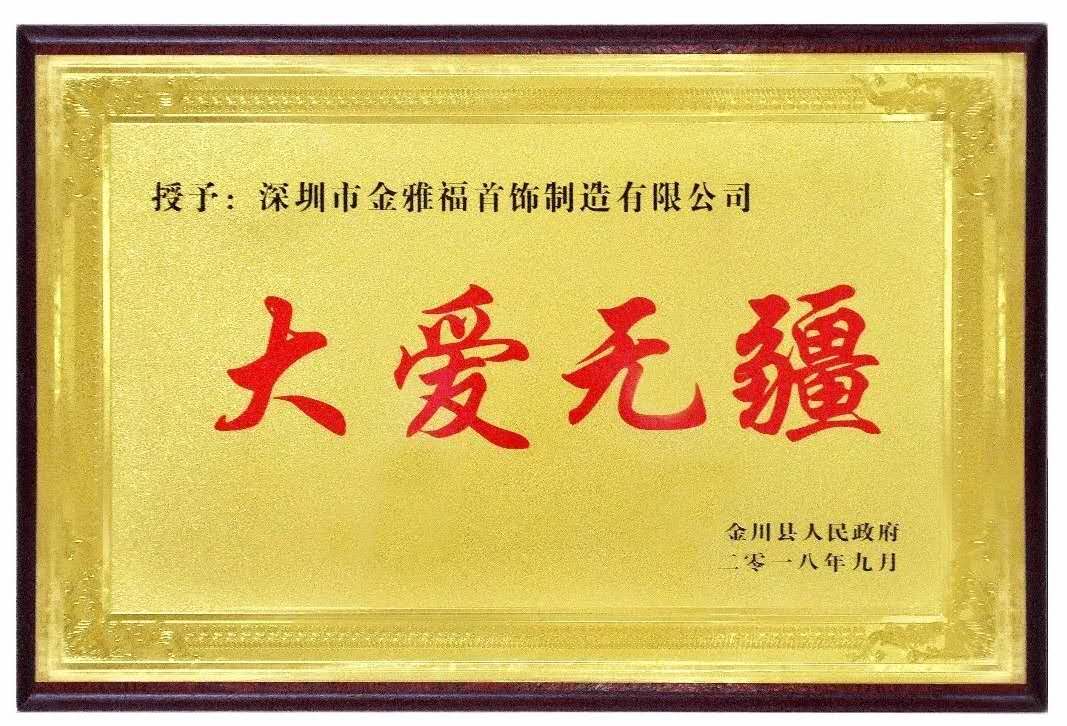 金川县人民政府授予金雅福“大爱无疆”牌匾